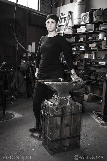 Hazel works in all things metal. Beginning in 1999, after learning some basics from a friend then working for others in the metalworking field, she eventually opened her own shop producing decorative railings and home furnishings as well as jewelry and art. Since youth, she loved knives and weapons of all kinds, yet lost sight of the interest due to the city life. After many years making items for the home, she discovered the bladesmithing school Studio4 right next door to her Seattle shop. She has since completely fallen in love with the making of knives and now centers her work around furthering these skills and developing this passion into a full-time custom blade studio. |